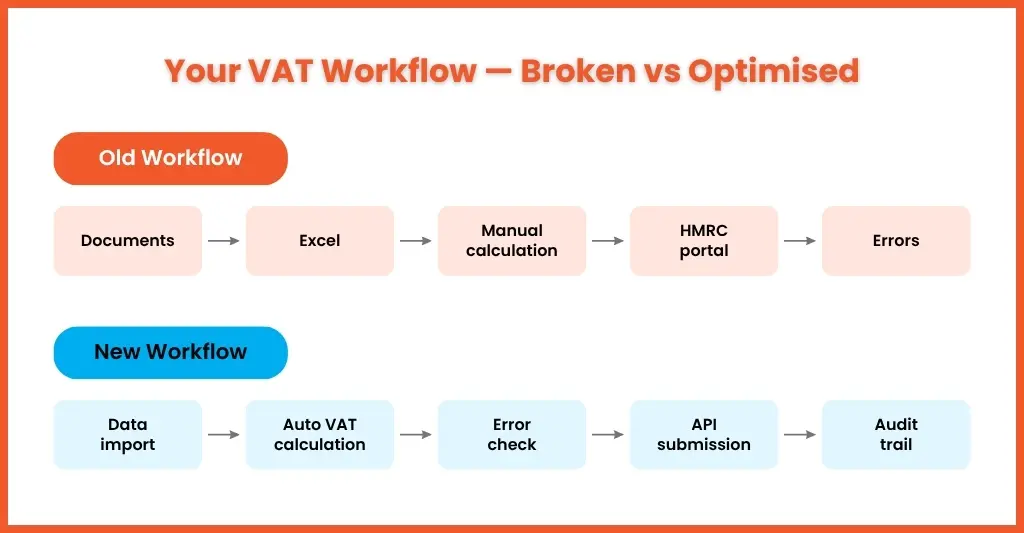 The firm struggled to keep track of manual spreadsheets based on VAT. It caused a lot of mistakes, missed deadlines and fines from HMRC. The staff had to spend a lot of time doing simple maths, so they did not have time to do other important work.