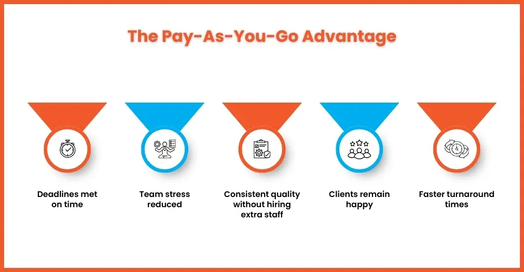 They provide additional capacity exactly when needed, helping firms manage peak workloads like year-end accounts, tax deadlines, and payroll processing without overburdening their in-house team.