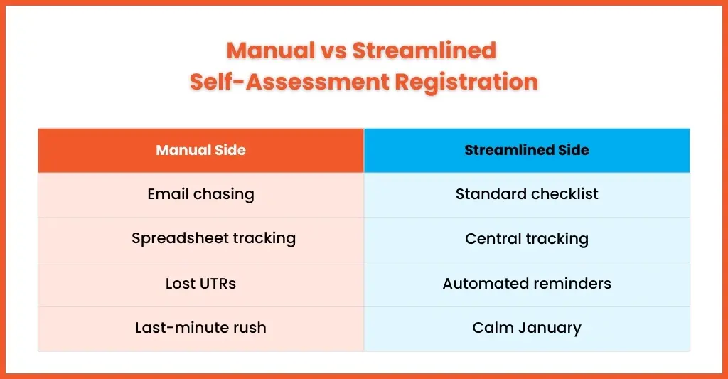 Miss the deadline to register for self assessment, and your client will have to face penalties. It’s a deadline that has become a source of pressure on accounting practices, especially when a client is onboarded late.
